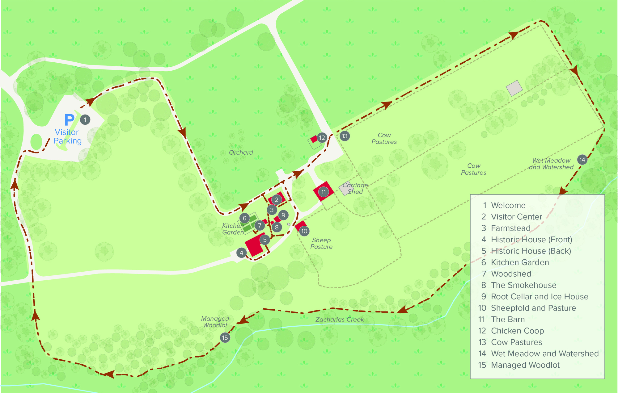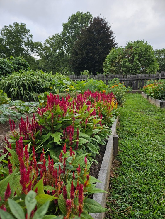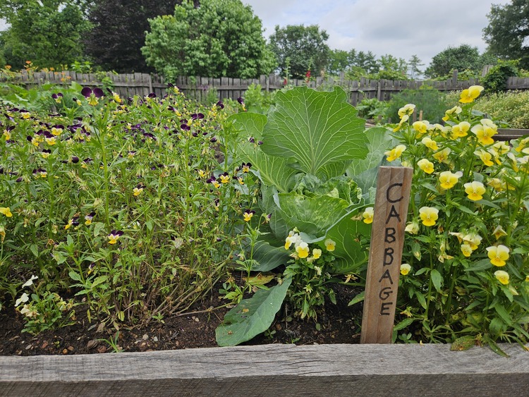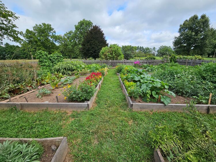 The Wentz Garden is modeled after a Pennsylvania German, "foursquare" garden, with four raised beds in the center, and a bed along the wood fence. Colonial German families grew vegetables like beans, cabbage, onion, parsnips, and pumpkins in the center beds, and herbs for seasoning, and ornamental and medicinal flowers in the outer beds. The garden was located in a sunny spot, close to the house, and women in the family were responsible for tending. The Farmstead thanks the Wentz Weeder volunteers, who plant and care for the garden throughout the year. Feel free to enter the garden and take a walk around.